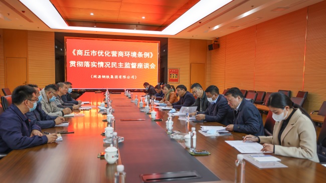 劉軍副主席一行先后深入公司智能信息中心、雙高棒生產車間和企業(yè)文化展廳,實地了解公司生產運營情況、當前存在的困難以及優(yōu)化營商環(huán)境工作落實情況。在公司召開的《商丘市優(yōu)化營商環(huán)境條例》貫徹落實情況民主監(jiān)督座談會上,吳天國對劉軍副主席一行的到來表示熱烈歡迎,詳細匯報了公司發(fā)展現(xiàn)狀、企業(yè)轉型升級、綠色發(fā)展和下步發(fā)展規(guī)劃等情況,并就商丘及永城市持續(xù)優(yōu)化營商環(huán)境助推閩源鋼鐵集團高質量發(fā)展表示誠摯感謝,同時結合企業(yè)實際對全市優(yōu)化營商環(huán)境工作提出建議。