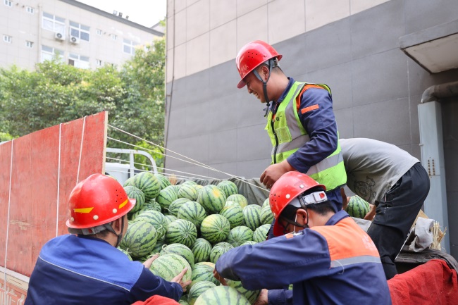 悠悠夏日長,閩源送清涼。為做好高溫天氣員工的防暑降溫工作,保障廣大員工身心健康,切實(shí)將關(guān)心關(guān)愛員工落到實(shí)處,6月3日,公司采購1萬余斤優(yōu)質(zhì)西瓜,由后勤部組織向各單位發(fā)放,在炎炎夏日給員工們送去絲絲舒心的涼意。